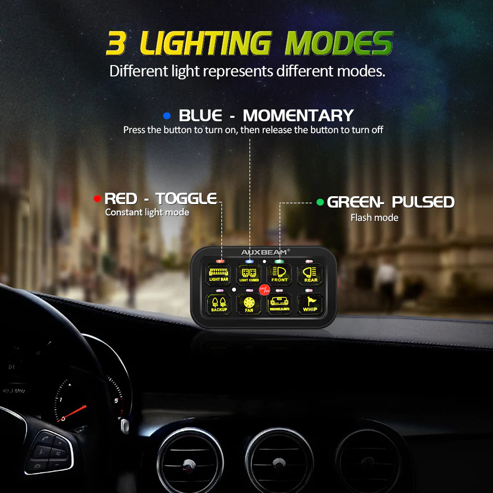 AR-800 RGB SWITCH PANEL WITH APP, TOGGLE/ MOMENTARY/ PULSED MODE SUPPORTED